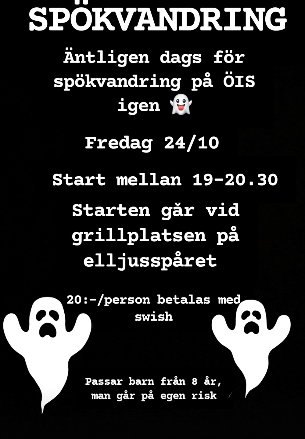 Fredagen 24/10 med start från 19.00-20.30. Starten är vid grillplatsen, tänk på att belysningen är avstängd den dagen, så en ficklampa fram till starten är att rekommendera.